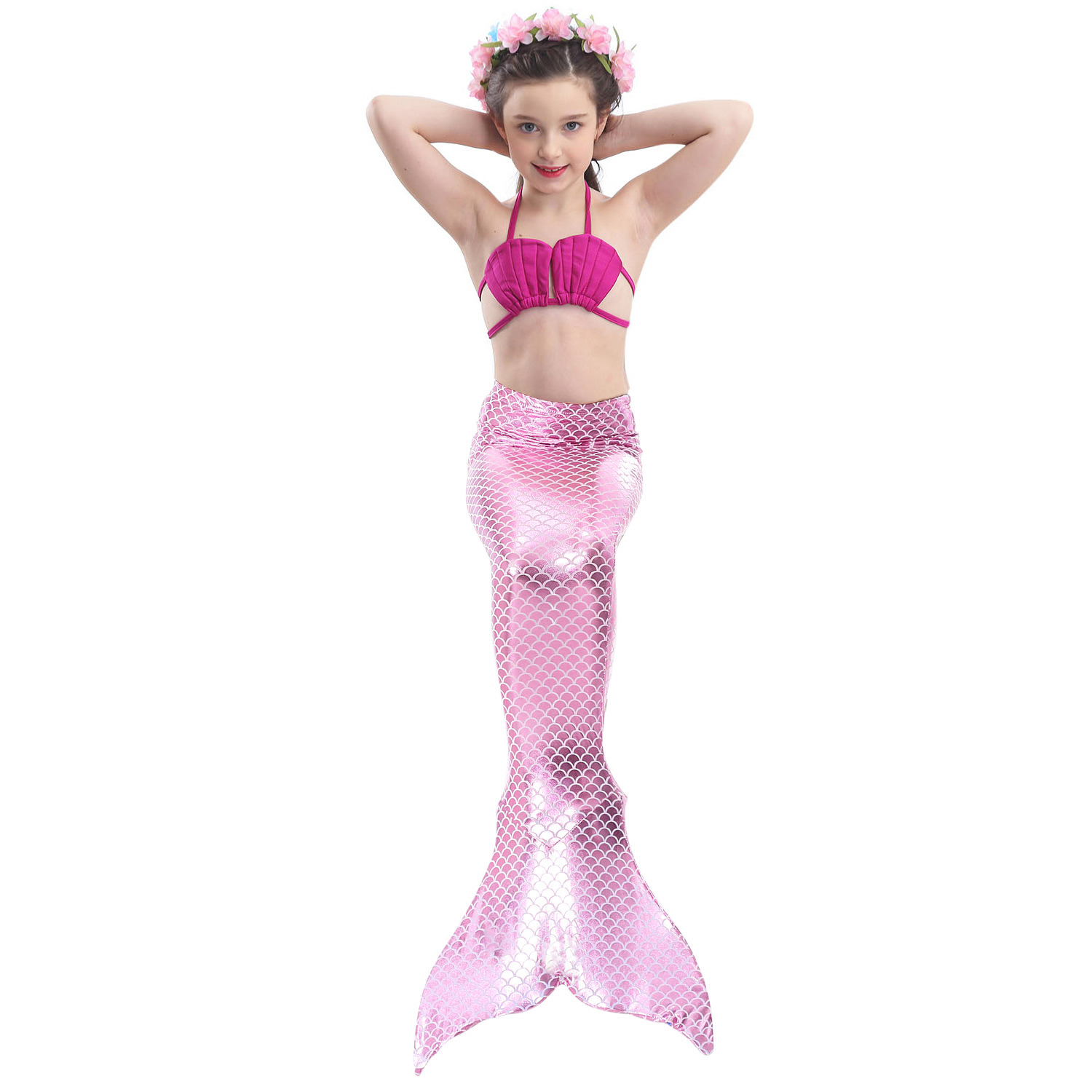 This beautiful 3-pieced mermaid swimwear is featured with stretchy material printed with shimmery fish scales pattern.