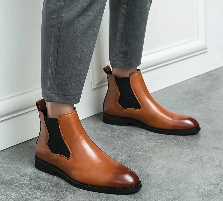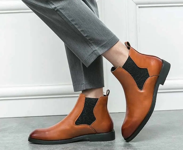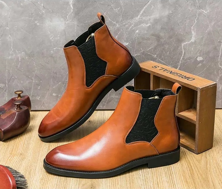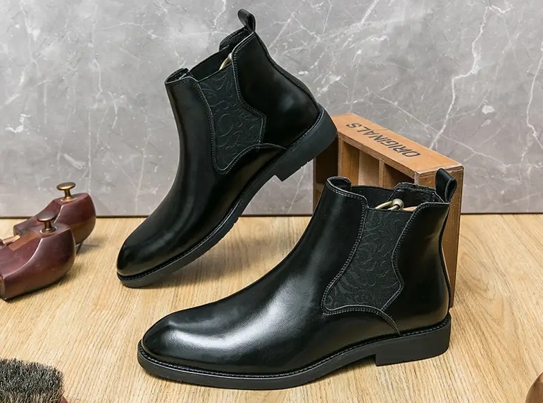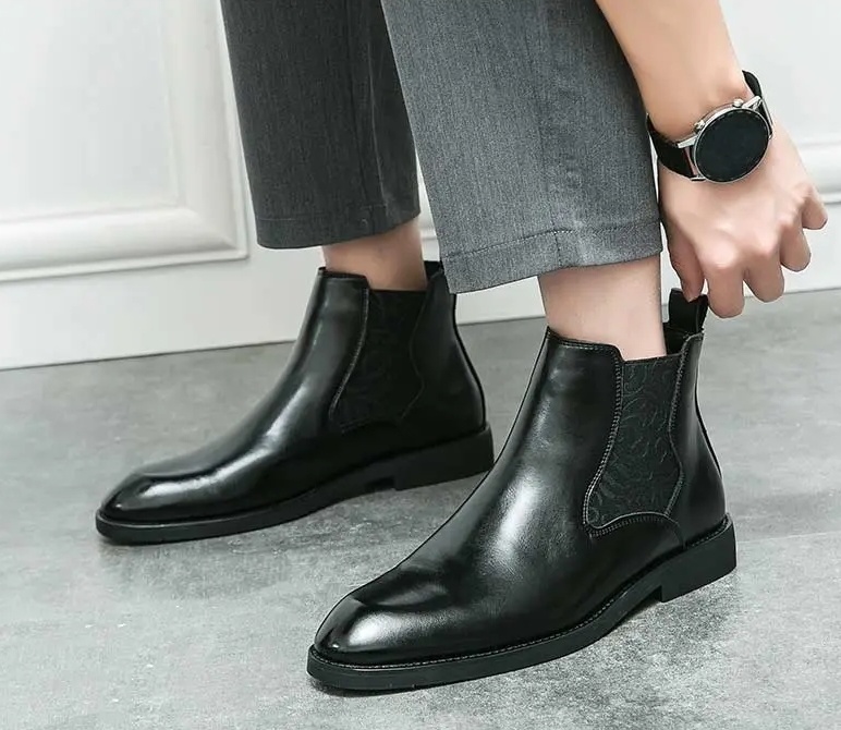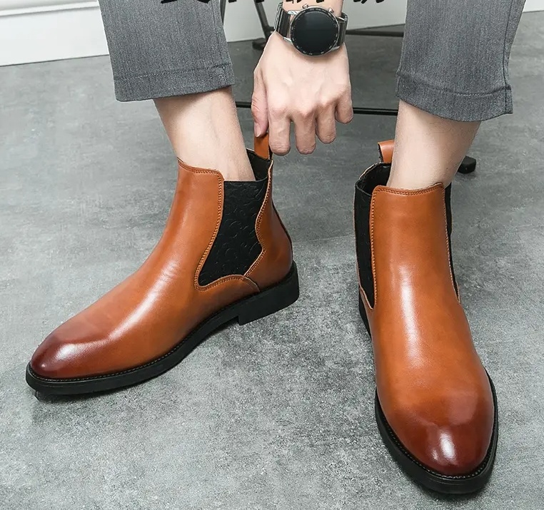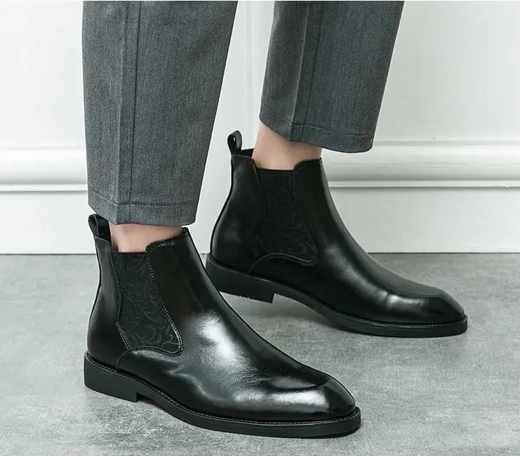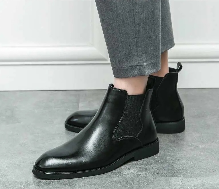 Be the first to review “Men’s elastic cut Chelsea boots Business dress leather boots men’s English high top men’s boots”