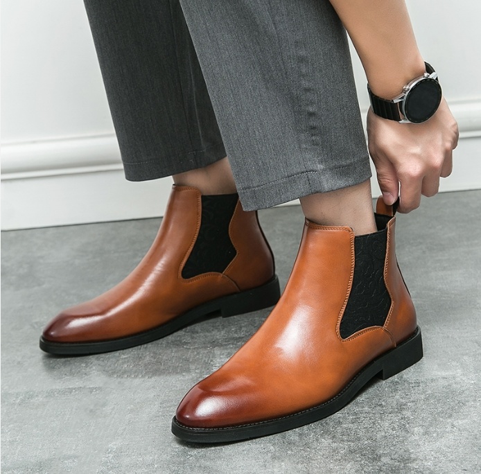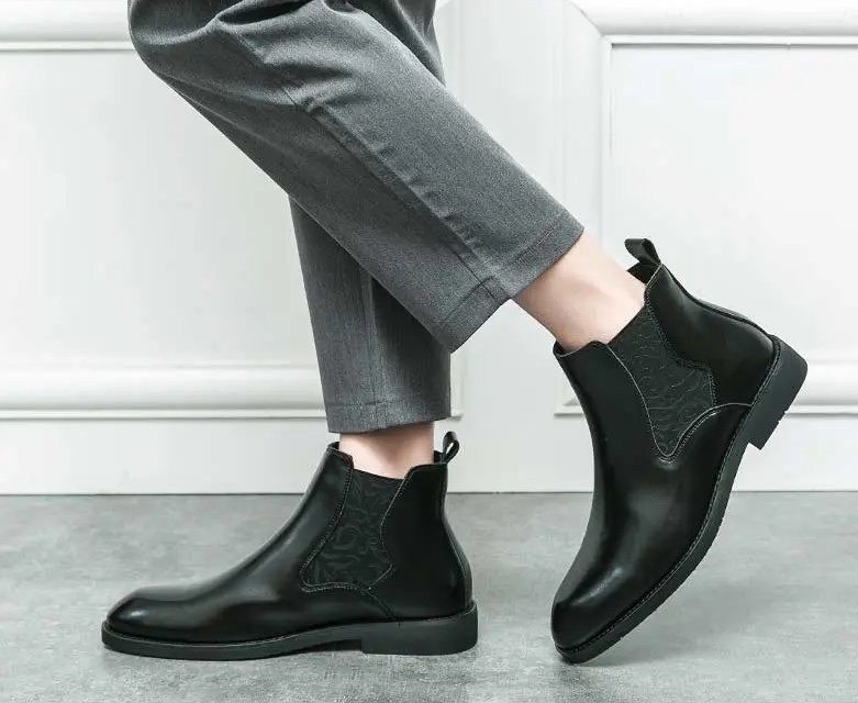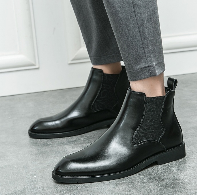 Men's elastic cut Chelsea boots Business dress leather boots men's English high top men's boots